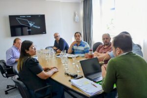 De la reunión con el intendente Mariano Hormaechea, participaron el Secretario de Gobierno, Pablo Fernández; Secretaria de Educación, Sonia Espina; Secretario de Turismo, Sebastian Candia De Biasio; Director de Cultura, Manuel Zampar; Director de Prensa, Alejandro Medina; y Coordinador de Comunicación Digital, Juan Pablo Martínez.