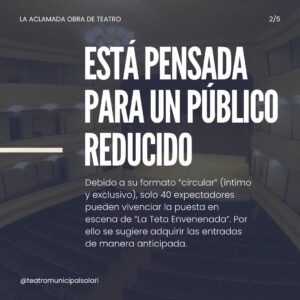 El viernes en el Teatro Municipal se volverá a presentar la obra La Teta Envenenada a las 21,30 horas con una capacidad para 40 personas.