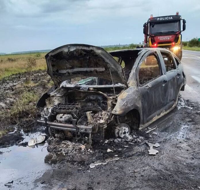 Afortunadamente, los dos ocupantes del vehículo lograron salir a tiempo y resultaron ilesos. Solo se registraron daños materiales.