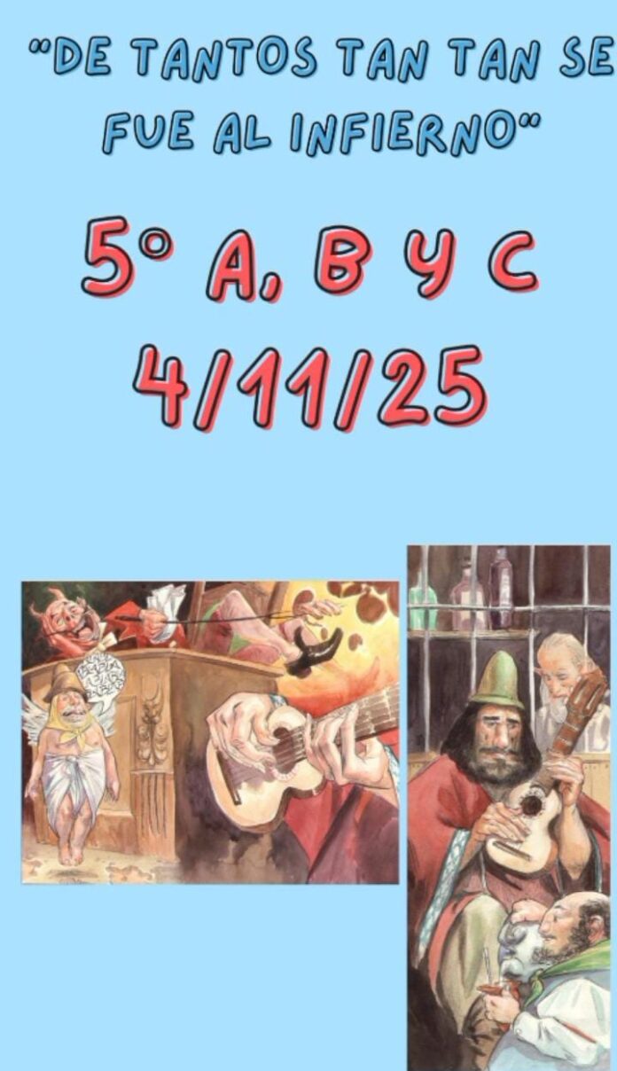 Sobre esta representación en contacto con Radio Ciudad, la docente Jimena Nicoletti, explicó: “Trabajamos con libros de chistes, cuentos disparatados, esta obra “De Tanto Tan Tan se fue al Infierno” “está llena de humor, absurdo, cuenta la historia de Valerio Alvarado, un hombre tan exagerado, que hasta el propio “diablo” se queda sin palabras, cuentos chistosos, disparatados, llevados después del proceso de lectura, análisis como obra de teatro, a cargo de los alumnos del 5º grado, pondremos en escena el martes desde las 9 y 30 horas, es abierta a toda la comunidad.”