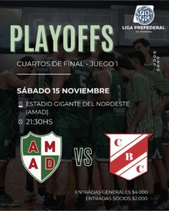La continuidad llegará al día siguiente, el sábado 15 de noviembre, también desde las 21.30 horas, pero en el imponente Gigante del Nordeste, donde AMAD enfrentará al Club Córdoba de Corrientes Capital. El “Tren Verde” buscará hacer pesar su localía en el primer juego de una serie que promete emociones fuertes.