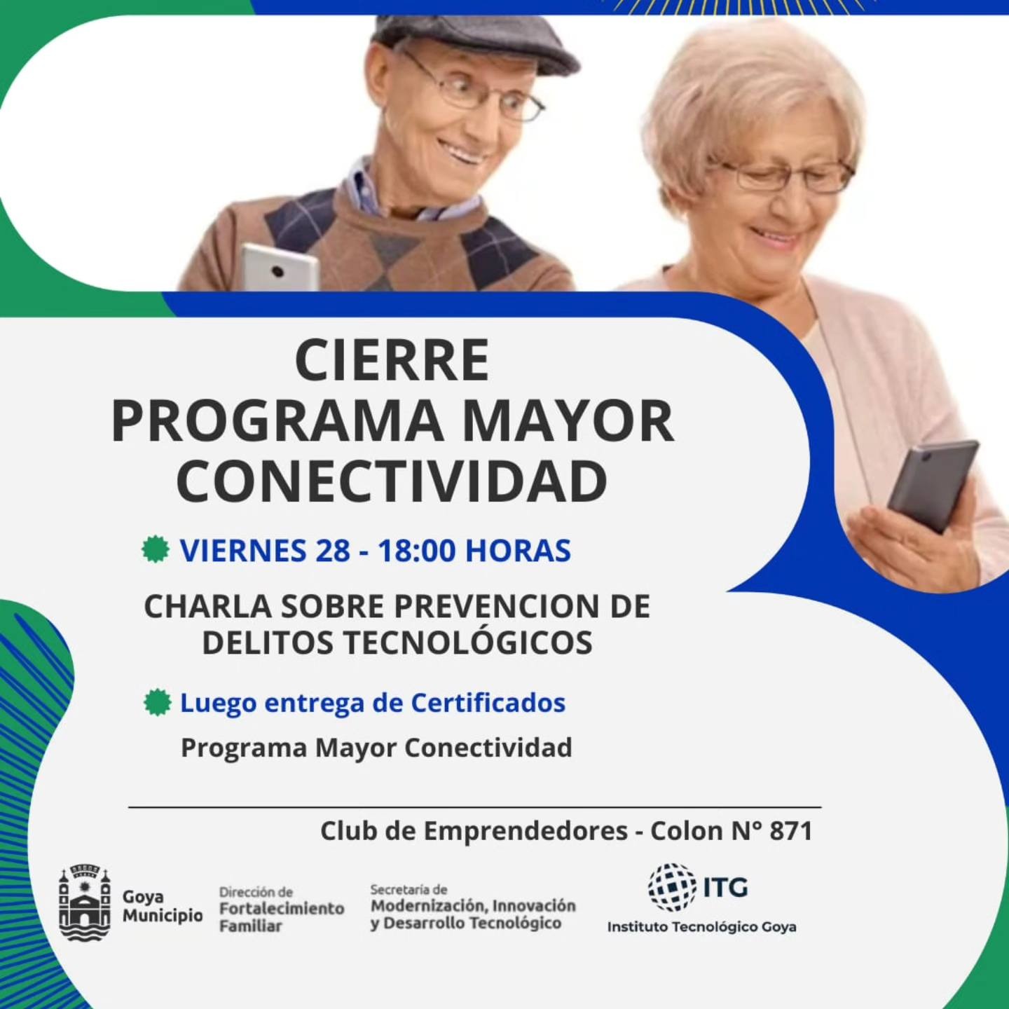 La Municipalidad de Goya, a través de la Secretaría de Modernización y la Dirección de Fortalecimiento Familiar, llevará a cabo el acto de finalización del programa “Mayor Conectividad”. El evento se realizará el próximo viernes 28 de noviembre a las 18:30 horas en el Club de Emprendedores Goya.