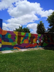 En otro tramo de la entrevista en Radio Ciudad, la funcionaria comentó sobre la intervención realizada en el merendero Piecitos Descalzos del barrio Esperanza: “Empezamos con eso y, en medio de eso, surgió. Estas iniciativas, nos llamó, nos comentó en un mensaje el hijo de Teresa Barbosa, que tiene el merendero. Fuimos e hicimos el mural. Es poner un poco de arte en distintos sectores”.