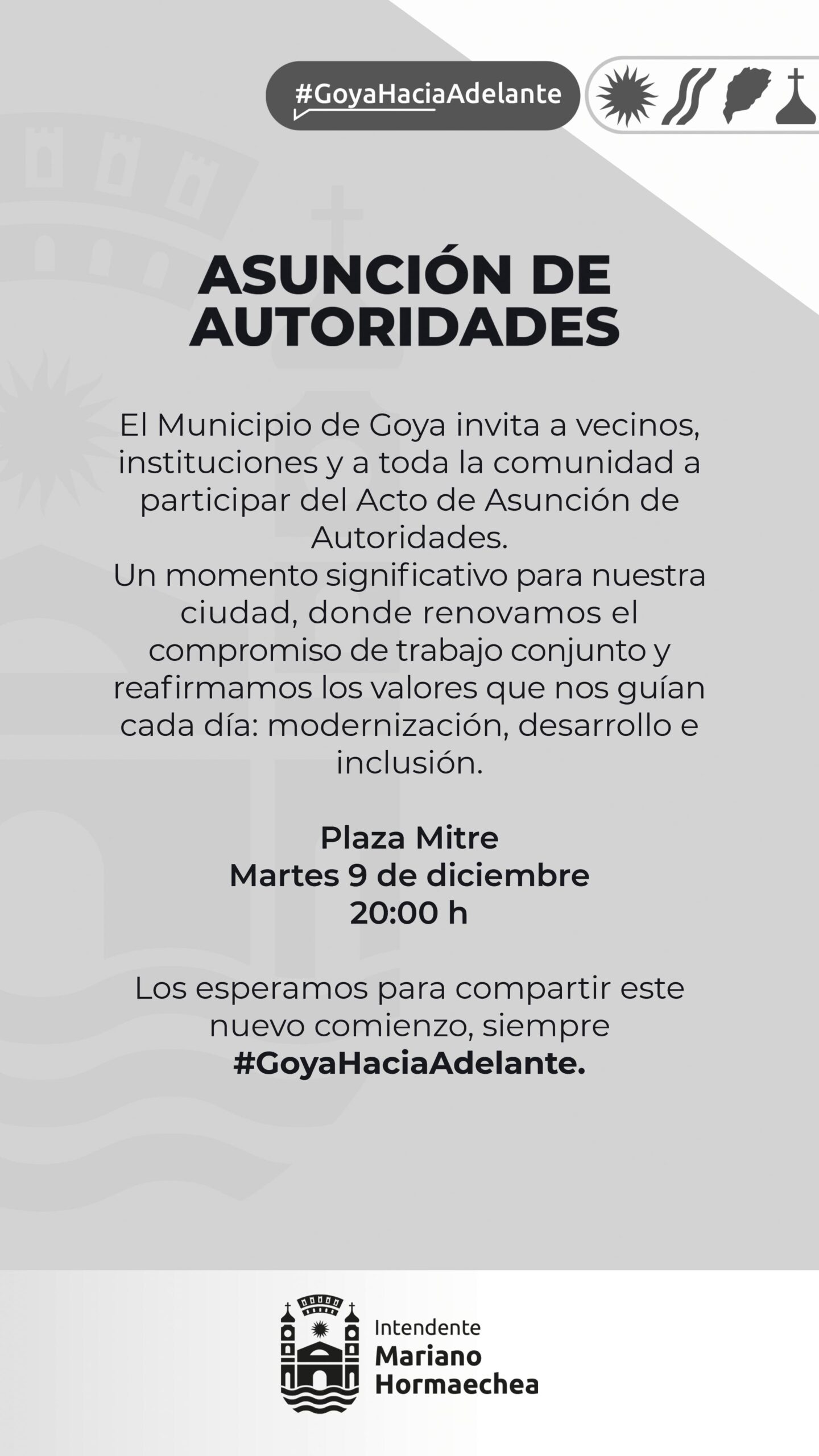 En plaza Mitre se realizará la ceremonia, donde el Doctor Mariano Hormaechea Intendente reelecto, prestará juramento como máxima autoridad municipal, para el periodo 2025- 2029. En el mismo acontecimiento el Contador Sebastián Mazzaro asumirá como Viceintendente municipal.