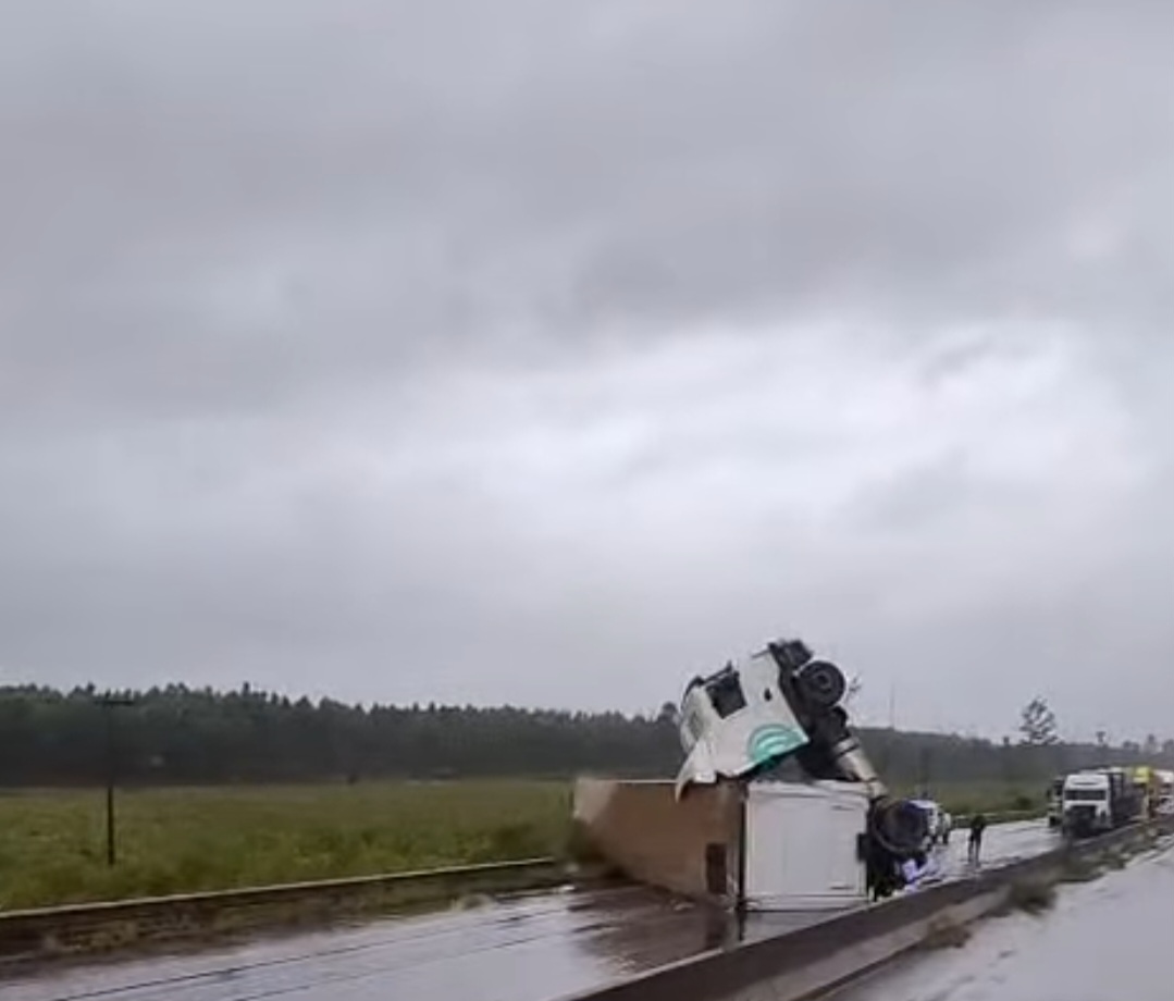 El tránsito, sobre el carril donde quedó el transporte pesado siniestrado, quedó interrumpido. En toda zona cercana al Río Uruguay, llueve desde la mañana de este lunes.