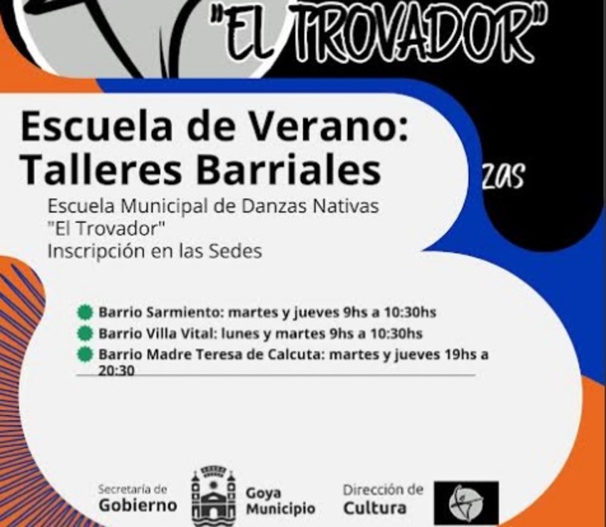 La Municipalidad de Goya desde la Secretaría de Gobierno, por medio de la Dirección de Cultura, suma propuestas para este verano brindando talleres de música, canto y danzas nativas.