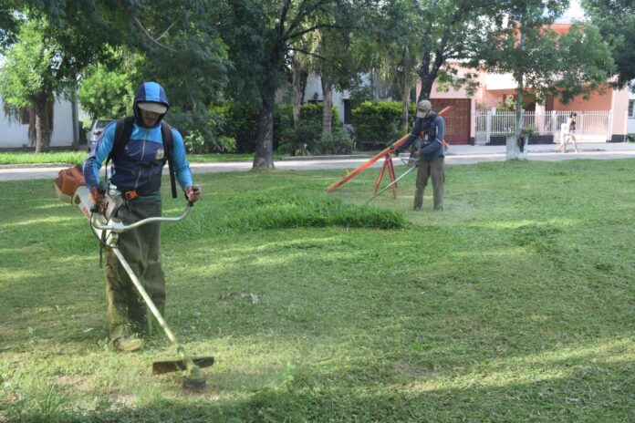 Las cuadrillas municipales realizan tareas de mantenimiento en espacios públicos. Se interviene en espacios verdes de los barrios y diferentes sectores de la ciudad.