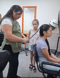 El espacio de belleza SPA Divertirte funciona los días lunes de 16 a 18 horas con la profesora Jesica Benítez. Allí, los niños comparten, aprenden y se divierten todo lo que sea relajación, manicura, cuidados de manos e higiene. Los fines de semana se brindan los espacios Peinados Kids y Rodetes Kids a cargo de las profesoras Florencia Medina y Cecilia Leiva. Este martes están a cargo de más talleres las profes Miriam Romero y Nidia Delgado. En tanto que la directora Gladis Ramos con la profe Marisa tienen a cargo el curso de Puntaditas Kids.