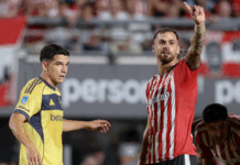 El equipo de Marcelo Gallardo terminó el partido con 10 futbolistas, al igual que su rival, debido a la doble amonestación sufrida por Matías Viña, en su segundo partido como jugador del “Millonario”.