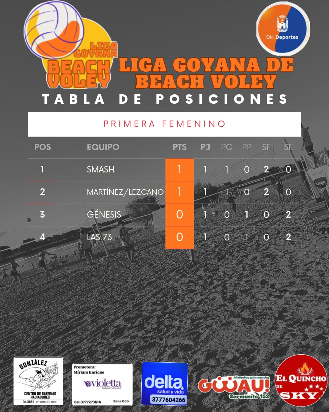 En Primera Mixto en la Zona A: Transition; Zona B: La Dupla Caneva/Insaurralde; Zona C: el Club AGDA y Zona D: La Dupla Córdoba/Aseguin, finalmente en la Categoría Primera Femenino, lidera Smash.