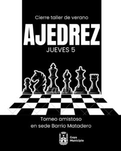En tanto, el jueves 5 de febrero, a las 18.30 horas, tendrá lugar el cierre del taller de ajedrez en el barrio Matadero, que se realizará mediante un torneo entre los participantes, destacando el aprendizaje, la práctica y el espíritu de camaradería que caracterizó a esta propuesta.