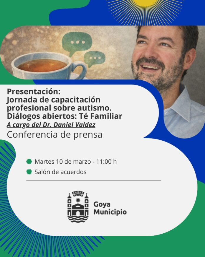 La Municipalidad de Goya invita a periodistas y comunicadores a participar de la conferencia de prensa que se realizará este martes 10 de marzo a las 11 horas en el Salón de Acuerdos del municipio, donde se brindarán detalles sobre una importante jornada de capacitación profesional vinculada al autismo.