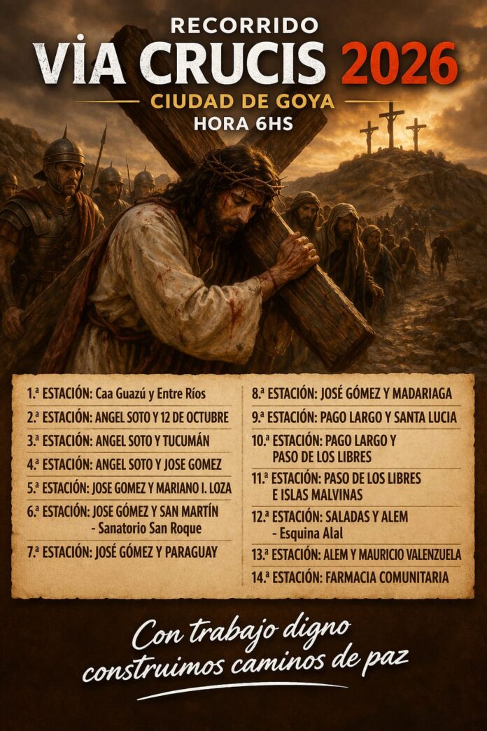 El camino orante y reflexivo que se nos propone en el vía crucis permitirá a la ciudadanía poder meditar y rezar especialmente por la preocupante situación laboral y económica que atraviesa el país en general, y de la cual, Goya no escapa.