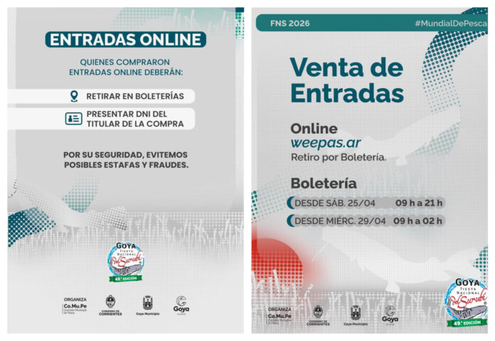 La ciudad de Goya ya comienza a palpitar una nueva edición de uno de los eventos más convocantes del país: la Fiesta Nacional del Surubí 2026 (FNS 2026). En este marco, la organización difundió información clave sobre la venta de entradas, tanto en modalidad online como presencial, junto con importantes recomendaciones para garantizar la seguridad de los asistentes.