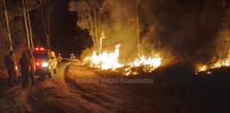 Incendio forestal en Monte Caseros: intervención de bomberos y policía rural