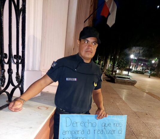 Ex policías detenidos por el reclamo salarial se encadenaron frente a Casa de Gobierno