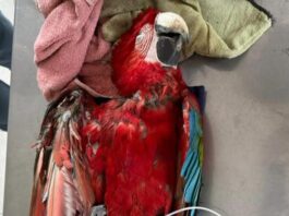 Lamentable en el Iberá: guacamayo rojo perdió la vida por un ataque con gomera